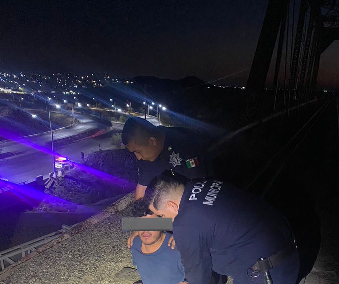“Los agentes lo escucharon y tras dialogar con él por varios minutos lo convencieron de dar unos pasos hacia atrás, lo cual aprovecharon para asegurarlo y ponerlo a salvo”, informó la Policía Municipal.