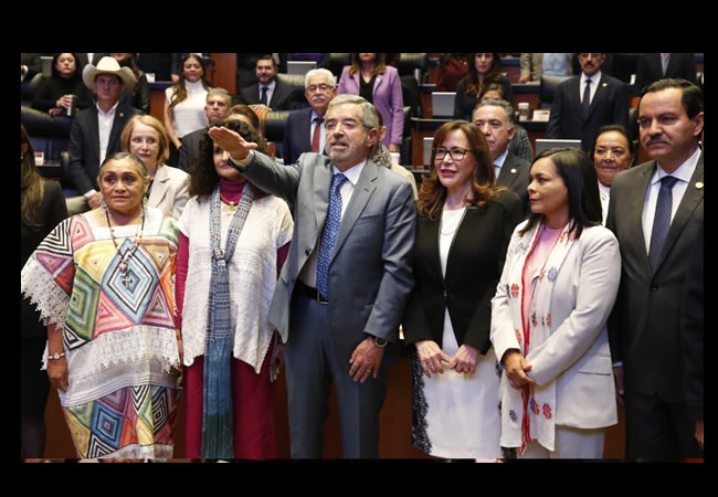 “A nombre del Senado de la República, le deseo éxito en su encargo”, dijo el presidente del Senado, Gerardo Fernández Noroña, al anunciar la ratificación de De la Fuente y tomarle protesta en el pleno.