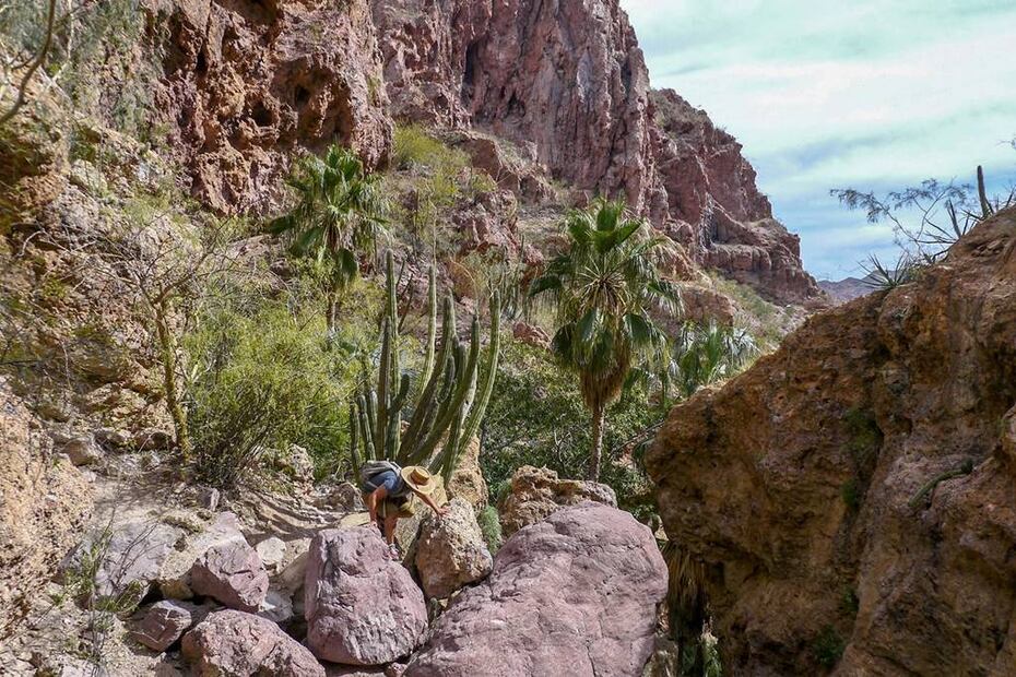El segundo oasis de San Carlos está a unos 20 minutos al norte del pueblo. En medio de una serranía de tonalidades ocre, se encuentra el Cañón del Nacapule, que forma parte de la Reserva Especial de la Biósfera Cajón del Diablo.![]()