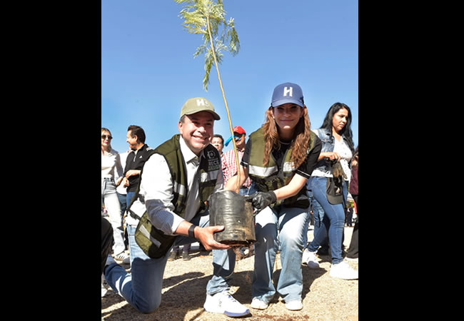 Acompañado por su esposa Patricia Ruibal Zaragoza, participó en la actividad dentro de la estrategia Hermosillo CRECE Verde, que tiene como meta plantar 300 mil árboles más en la ciudad, aunque dijo que serán muchos más con la participación ciudadana.