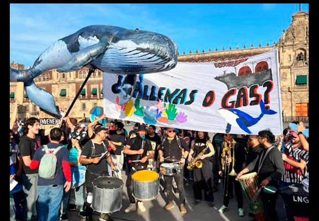 El pasado 29 de enero, organizaciones de la sociedad civil agrupadas en el colectivo ¿Ballenas o Gas?, se manifestaron en el Zócalo de la Ciudad de México contra el Proyecto Saguaro, luego de entregar en Palacio Nacional más de 215 mil firmas de ciudadanos de México y 120 países, donde piden se detenga el ecocidio que esta megaobra provocaría en el Acuario del Mundo.