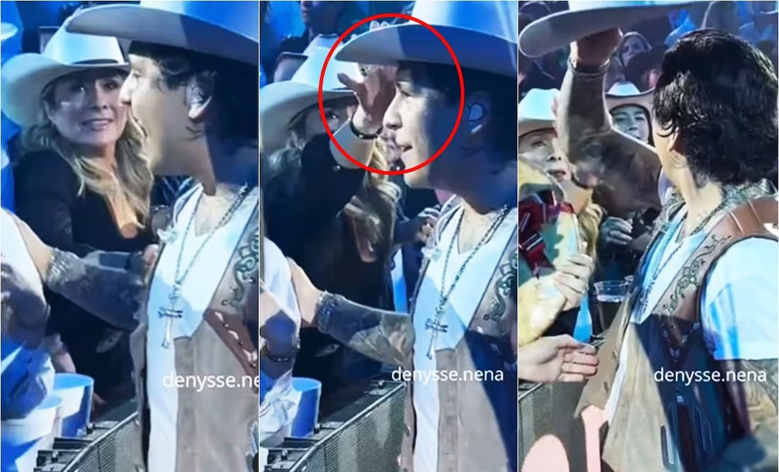 Christian Nodal regresó a tierras sonorenses para ofrecer un concierto el Día de las Madres y, aunque el evento fue todo un éxito, hubo un percance en el momento que interactuó con sus fans, pues una de ellas vio la oportunidad de quitarle el sombrero, gesto que el cantante tomó muy mal, por lo que, firme, le pidió a su seguidora que no lo hiciera.
