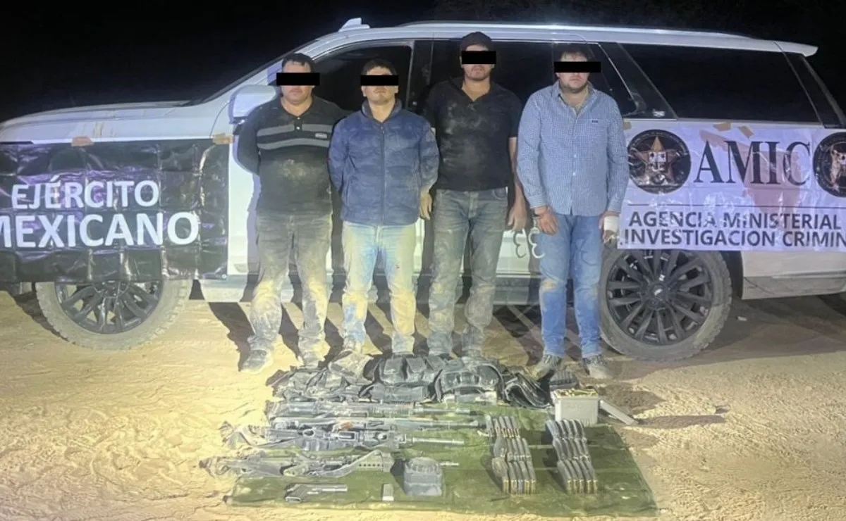 En un exitoso operativo conjunto en Sonora, elementos de la Agencia Ministerial de Investigación Criminal (AMIC) y la Secretaría de la Defensa Nacional (SEDENA) lograron la detención de cuatro hombres y el aseguramiento de un importante arsenal y un vehículo con reporte de robo.