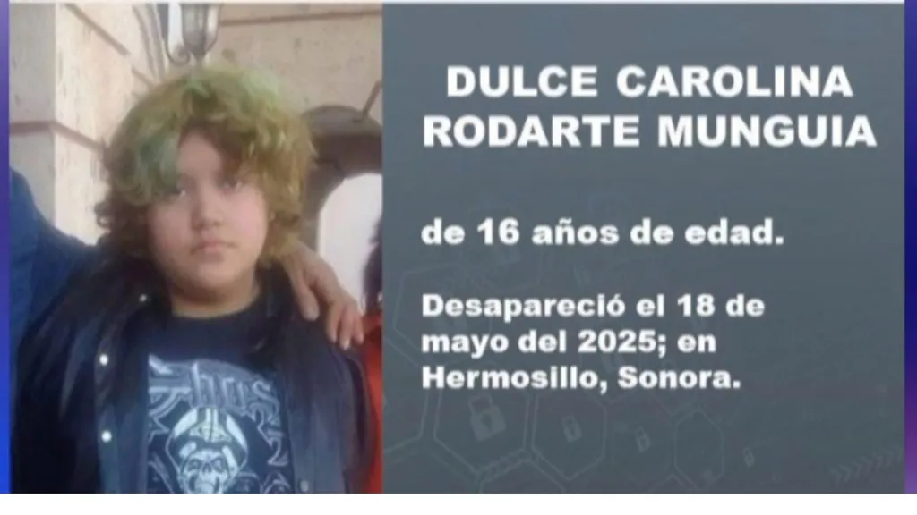 La Fiscalía General de Justicia del Estado activó una alerta ámber por Dulce Carolina Rodarte Munguía, menor de 16 años desaparecida en Hermosillo.