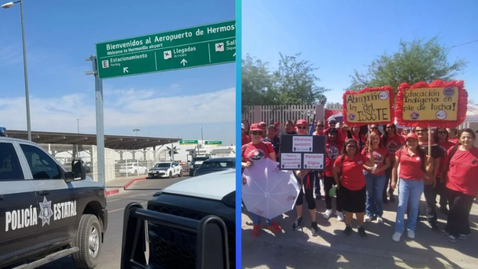 Decenas de patrullas de la Policía Estatal de Seguridad Pública (PESP) resguardaron esta mañana el Aeropuerto Internacional de Hermosillo, Sonora, como parte de las protestas que se dan a nivel nacional contra la reforma a la “Ley ISSSTE”.