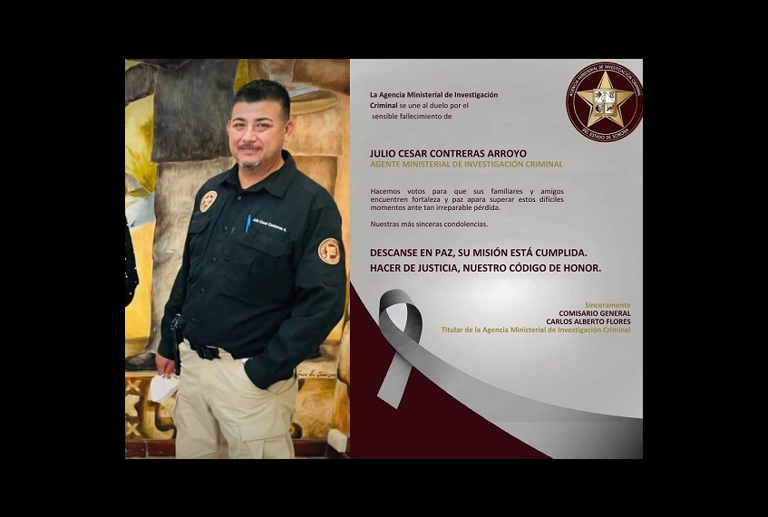 Hermosillo, Sonora.- Este viernes fue privado de la vida en un enfrentamiento armado ocurrido en Hermosillo el agente Ministerial de Investigación Criminal, Julio César Contreras Arroyo.