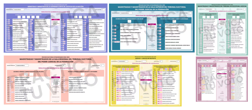 El abogado Luis Tapia reunió a un grupo de académicos en Washington (Estados Unidos) donde vive, para hacer un simulacro de la elección judicial. “No lo entendían”, resume, “veían el sistema de colores y se me quedaban viendo… Es una elección con un grado de complejidad alto”. Cada elector va a recibir el domingo seis boletas con un color diferente según sea para la Suprema Corte, el Tribunal de Disciplina, el Tribunal Electoral (sala superior o sala regional), los magistrados para tribunales de circuito y los jueces. Dentro de algunas boletas se añade también otro código de color, según la materia de esos juzgadores: civil, penal, administrativo… Además, a las seis boletas federales se sumarán en 19 Estados las papeletas de las elecciones locales. El INE ha calculado que cada persona va a tardar entre ocho y 14 minutos en votar.