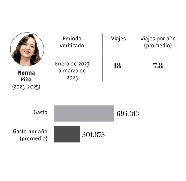 El ejercicio se realizó garantizando que fueran los mismos periodos los que se verificaron, debido a que la administración de Norma Piña como ministra presidenta de la Suprema Corte concluirá el próximo 31 de agosto y a que la información pública sobre las comisiones oficiales de ministros y ministras al exterior solo abarca hasta el primer trimestre de 2025 (enero-marzo).