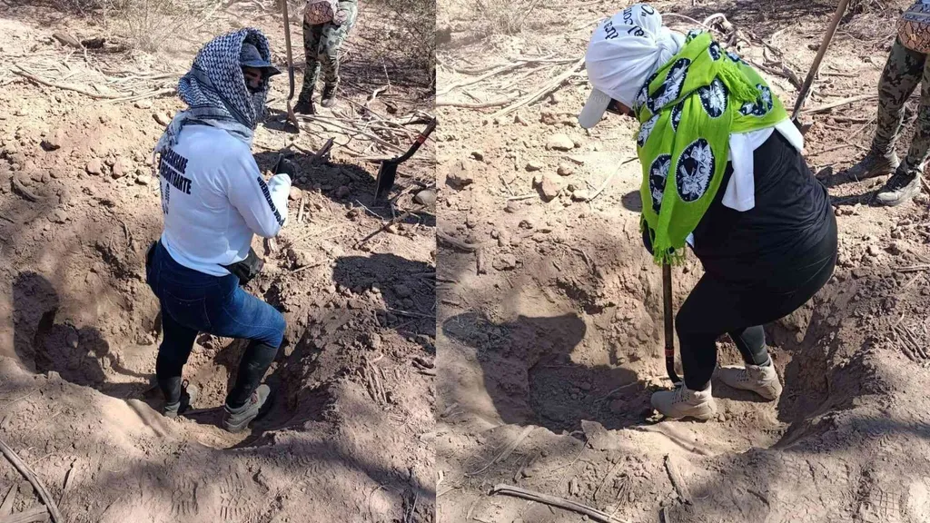El colectivo Guerreras Buscadoras de Cajeme, localizó una fosa clandestina en San Ignacio Río Muerto, con los cuerpos sin vida de dos hombres y una mujer, además de un vehículo abandonado.