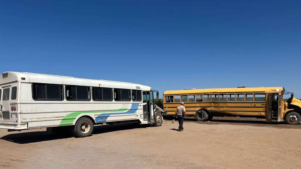 Información preliminar de los peritos indica que los trabajadores del campo viajaban a bordo de dos autobuses tipo escolar y al llegar a un cruce de vialidades sin señalamiento, los conductores de los vehículos se impactaron por la parte frontal.