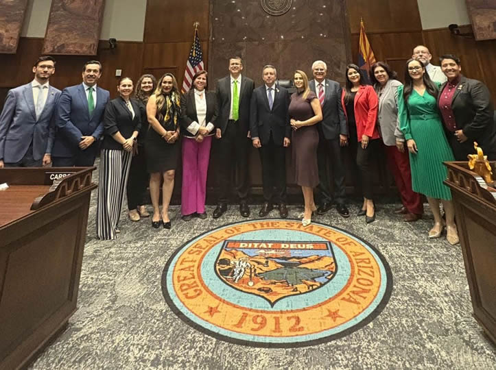 Legisladores de Arizona que participaron en la reunión incluyen a Steve B. Montenegro, presidente de la Cámara de Representantes de Arizona; Tony Rivero, presidente del Comité de Comercio Internacional; Michele Peña, vicepresidenta del Comité de Comercio Internacional; y Michael Carbone, líder de la mayoría.