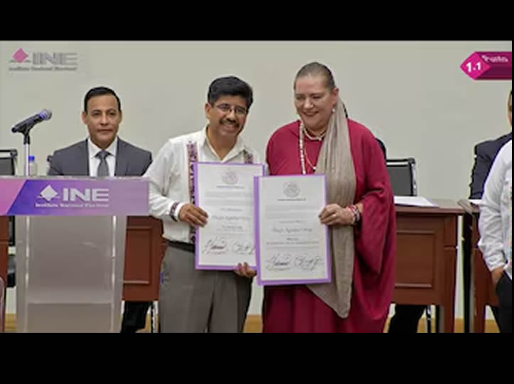 En la ceremonia, María Estela Ríos González, Loretta Ortiz Ahlf, Yasmín Esquivel Mossa, Lenia Batres Guadarrama, Arístides Guerrero García, Irving Espinosa Betanzo y Giovani Figueroa Mejía, también recibieron su constancia de mayoría.