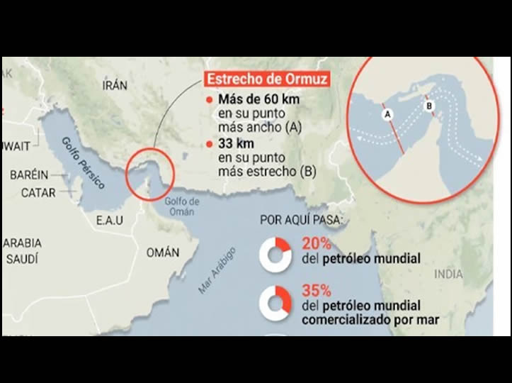 Aproximadamente el 20% del petróleo del mundo circula por el estrecho de Ormuz, un paso marítimo angosto entre Irán y Omán que las autoridades persas han amenazado en varias ocasiones con bloquear, en respuesta a las tensiones con Estados Unidos y otros países occidentales.