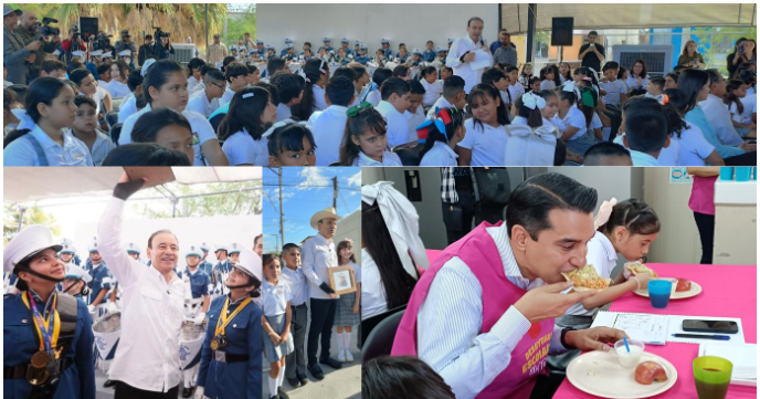 Ya bajo el domo de la escuela, donde la banda “Tigres” de la secundaria 31 se llevó las palmas en la ambientación marcial protocolaria, demostrando porqué arrasaron con los primeros lugares en la competencia nacional de escoltas y bandas de guerra 2025 celebrada en Michoacán, el gobernador volvió sobre sus propias nostalgias en Bavispe, aquel pueblito enclavado en lo alto de la sierra donde comenzó sus estudios en los tiempos en que no había nada de lo que hay ahora: “si un niño de Bavispe pudo, en base a sus estudios llegar a ser gobernador del estado, ustedes también pueden”, les subrayó.