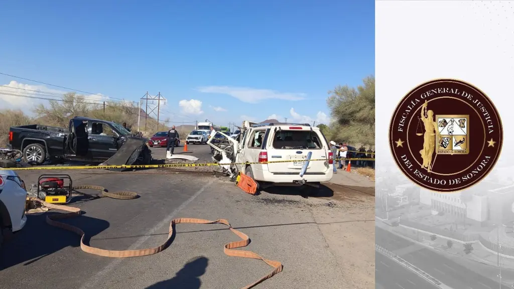 La Fiscalía General de Justicia de Sonora abrió una carpeta de investigación para esclarecer los hechos, presentados al filo de las 4:00 de la tarde, a la altura del kilómetro 52, donde una camioneta negra y otra color crema participaron en un choque frontal.