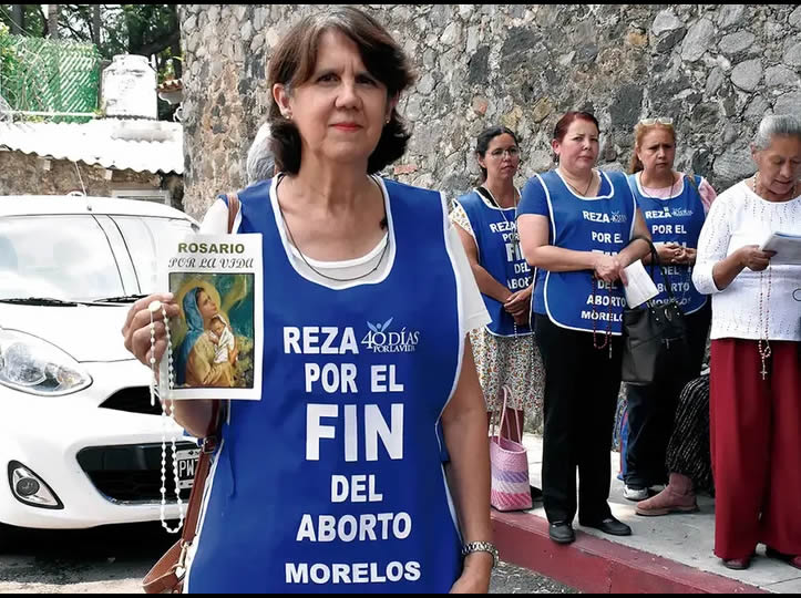 La señora Josefina Martínez coordina el rezo del rosario. Es corredora de bienes raíces y dice que oran al exterior de hospitales públicos de Cuautla, Emiliano Zapata, Yautepec y Cuernavaca, y que lo hacen en más de 100 ciudades del país. “Después de las jornadas de oración, hay vidas salvadas, personas que se convierten, centros de abortos cerrados”. El grupo forma parte del frente internacional 40 Días por la Vida que, según su portal, fue creada en 2007 y tiene presencia en 64 naciones a través de un millón de participantes.