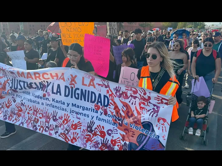 Hermosillo, Sonora.- Decenas de personas se unieron a la marcha por la justicia y la dignidad realizada por las calles de la ciudad de Hermosillo en memoria de Meredith, Madelin, Karla y Margarita, hijas y madre asesinadas en el poblado Miguel Alemán.