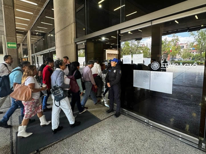Representantes de las secciones 9, 10, 11 y 60 de la Coordinadora Nacional de Trabajadores de la Educación (CNTE) de la Ciudad de México ingresaron a las oficinas de la Secretaría de Educación Pública (SEP) ubicadas en Av. Universidad 1200, Coyoacán, poco después de las 11 de la mañana.