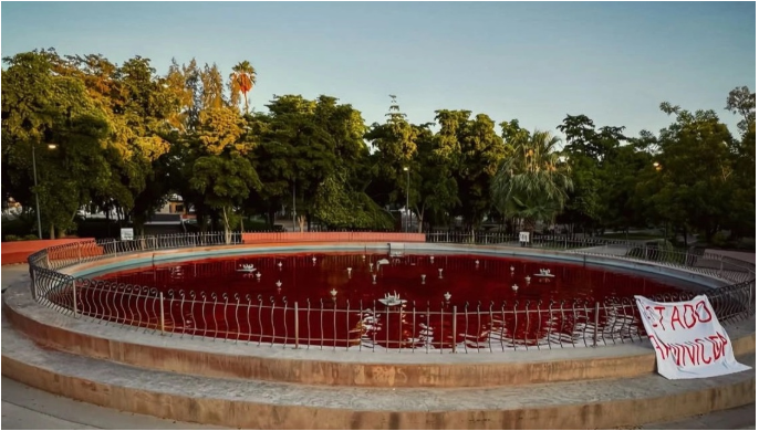 Con una postal lúgubre despertó Hermosillo el pasado domingo. El agua de la fuente del Parque Madero teñida de rojo sangre anticipaba lo que vendría más tarde: una marcha de miles, mayoritariamente mujeres, se hizo presente para levantar un reclamo de justicia por una madre y sus tres hijas asesinadas brutalmente días atrás.
