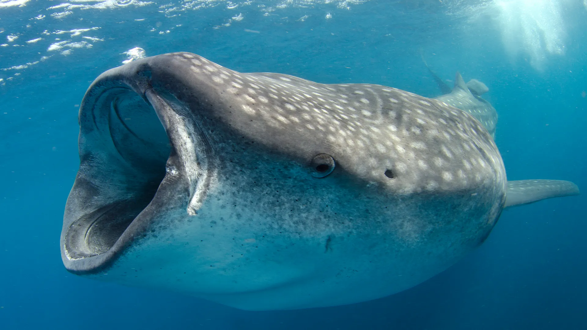 El tiburón ballena puede llegar a medir lo mismo que tres coches compactos en fila. A pesar de su magnitud, se alimenta de diminuto zooplancton. Su desplazamiento habitual es lento y pasa mucho tiempo en la superficie y en zonas costeras, lo que lo hace especialmente vulnerable a ser golpeado por embarcaciones.