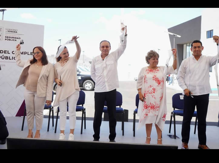 Guaymas, Sonora; 21 de julio de 2025.- Como parte de la Estrategia Nacional de Construcción de Paz en Sonora, el gobernador Alfonso Durazo Montaño y la subsecretaria de Gobernación Rocío Bárcena Molina, encabezaron una gira de trabajo por el sur del estado para la inauguración del Complejo de Seguridad Pública en Guaymas, con una inversión de 300 millones de pesos y llevaron a cabo la instalación del Consejo Estatal de Paz y Justicia Cívica en Cajeme.