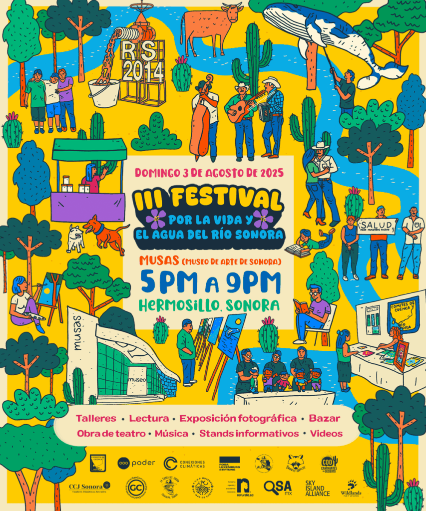 Este año, para la realización de la tercera edición del evento, se suma a la convocatoria la organización Conexiones Climáticas. A través de actividades culturales, talleres, charlas, música y exposiciones, el festival busca visibilizar las luchas comunitarias que han resistido el abandono institucional y seguir exigiendo justicia, salud y reparación integral para la cuenca del Río Sonora.