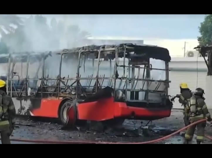 Hermosillo, Sonora. Una unidad del servicio del transporte urbano fue consumida en su totalidad por fuego que se provocó por una falla mecánica.