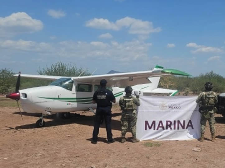 Ciudad de México. La Secretaría de Marina-Armada de México (Semar) reportó este domingo que interceptó y aseguró una avioneta tipo Cessna en el municipio de Cajeme, Sonora, la cual transportaba a una persona con dos paquetes de droga. El individuo fue detenido tras aterrizar en una pista clandestina.