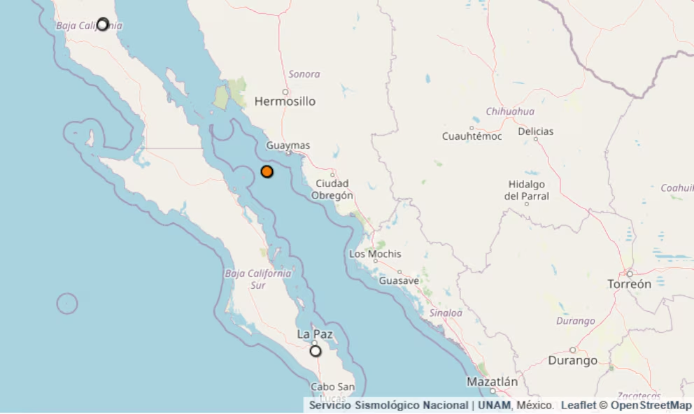 El Servicio Sismológico Nacional (SSN) reportó un sismo de 4.2 de magnitud en el municipio de H Guaymas ubicado en Sonora.