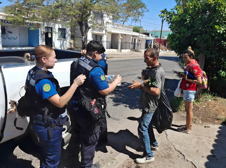 “En conjunto con elementos de la Policía de Hermosillo hicimos recorridos de apoyo en entrega de hidratación a personas vulnerables por pronósticos de altas temperaturas en varios puntos de la ciudad”, comentó Morales Flores.