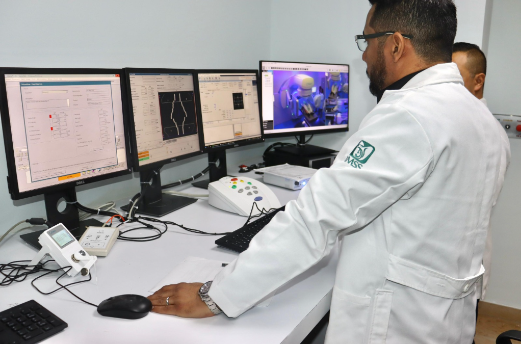El físico médico del HGR No. 1, Rafael Soto Acevedo, explicó que el sistema del equipo incorpora imágenes que ayudan a los médicos visualizar los objetivos tumorales y el tejido sano, el cual entrega dosis muy precisas de radiación, incluso en tumores milimétricos.