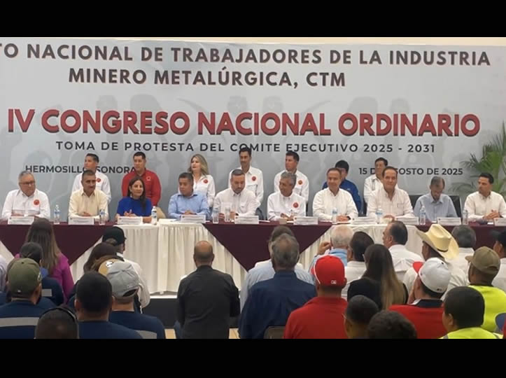 Hermosillo, Sonora.- Javier Villarreal Gámez, fue reelecto como Secretario General del Sindicato Nacional de Trabajadores de la Industria Minero Metalúrgica (CTM para el periodo 2025-2031 y tomó protesta en el IV Congreso Nacional del gremio minero celebrado lso días jueves y viernes de la presente semana.