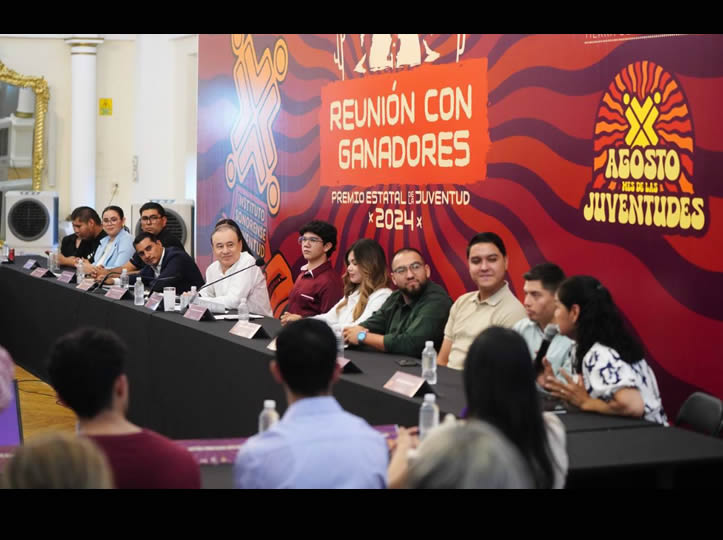 Hermosillo, Sonora; 25 de agosto de 2025.- En el marco del Mes de la Juventud, el gobernador Alfonso Durazo Montaño encabezó una reunión con las y los ganadores del Premio Estatal de la Juventud 2024, donde reconoció el talento, esfuerzo, compromiso y liderazgo de las y los jóvenes sonorenses que han destacado en distintos ámbitos de la vida social, cultural y académica.