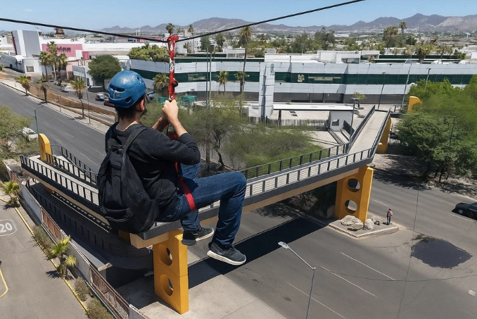 La primera de ellas es instalar una tirolesa desde la escuela de Medicina de la Unison hasta el Hospital Universitario, que vendría a matar varios pájaros de un tiro. Resolvería los problemas de movilidad de cientos de jóvenes pasantes que diariamente van y vienen entre uno y otro edificio, pero también el de otros estudiantes, peatones comunes y pacientes que además, viajarían muy seguros, no de evitar un accidente, sino de que en caso de pegarse un putazo, rápidamente serían atendidos allí mismo por los estudiantes de Medicina, lo cual a su vez les serviría de práctica profesional con valor curricular.