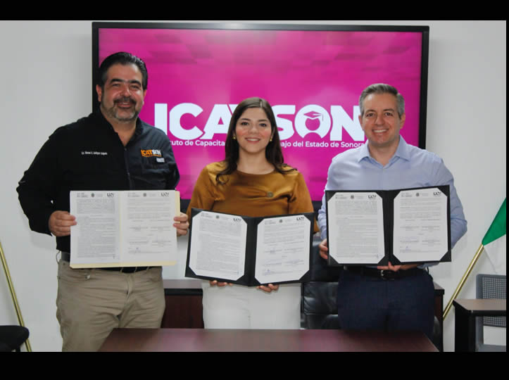 En la firma participaron, por parte del Congreso de Sonora, el diputado presidente Omar Del Valle Colosio (PVEM) y la vicepresidenta Amairany Peña Escalante (PES). En representación del Icatson, acudieron su director general, Manuel Gallegos Salgado, y el director de Vinculación y Promoción, Joel Ayala Rodríguez.