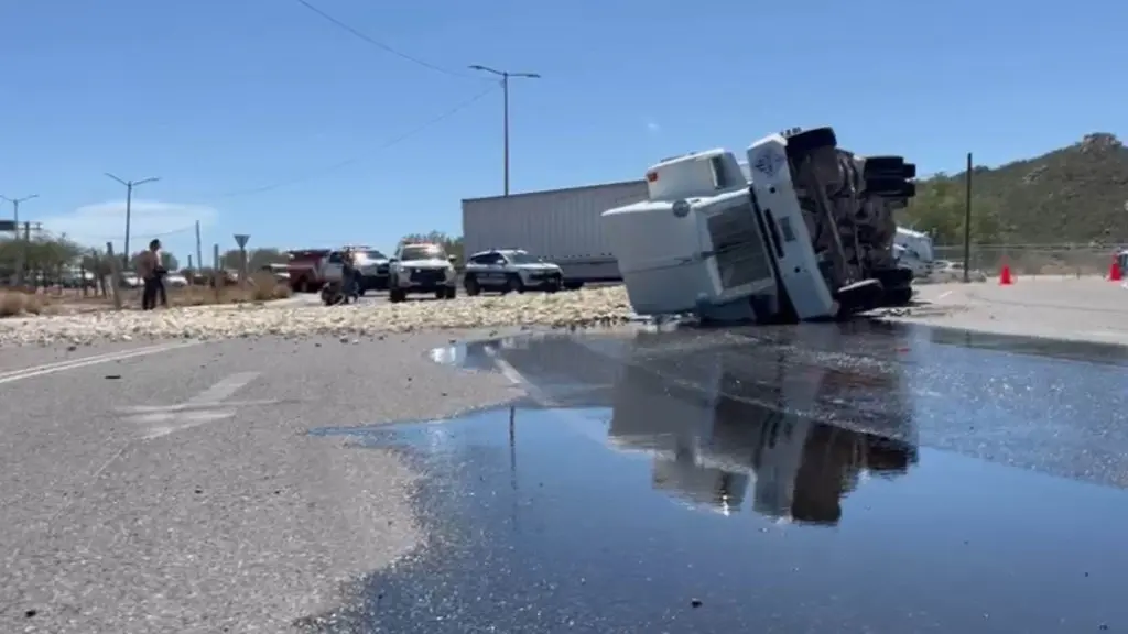 Vehículo de Carga se Voltea en Hermosillo; Se Derramaron Más de 600 Litros de Combustible