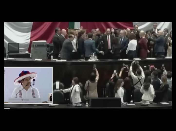 No obstante, los ánimos se desbordaron tras el retiro de la secretaria Rosa Icela Rodríguez, justo cuando el senador y dirigente nacional del PRI, Alejandro Moreno, fijaba una dura posición de su partido en tribuna, mientras morenistas y petistas le gritaban “¡porro!”, “¡desafuero, desafuero!” y “¡Alito, entiende, el pueblo no te quiere!”, obligando al diputado presidente, Sergio Gutiérrez Luna, a interrumpir seis veces al orador para llamar al orden.