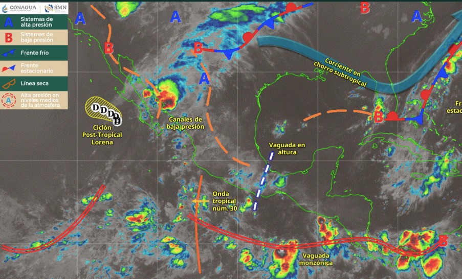 La jornada continuará lluviosa y no solo por efectos de “Lorena”, sino también por otros sistemas que prometen darle mucha humedad al país, así que prepárate y toma precauciones si habitas o viajas a las zonas con alta probabilidad.