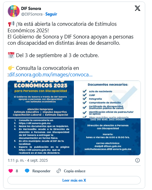 De acuerdo con información del DIF Sonora, los interesados podrán consultar las bases en el portal dif.sonora.gob.mx.