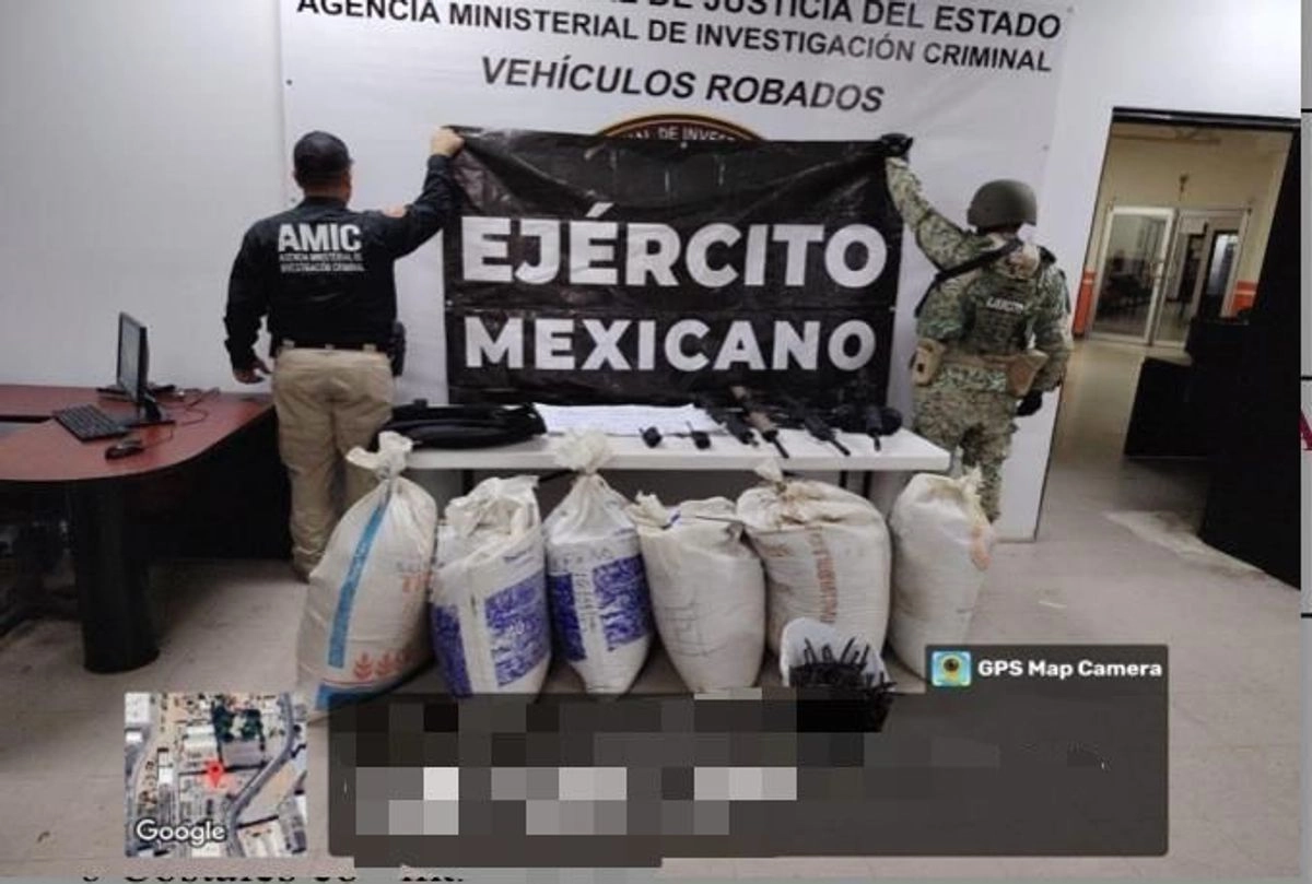 En Hermosillo, las autoridades aseguraron seis costales con mariguana, además de cuatro armas largas, cuatro cargadores, 53 cartuchos, un vehículo con reporte de robo, un chaleco táctico y una placa balística. Estas acciones fueron encabezadas por personal del Ejército Mexicano, Guardia Nacional, Secretaría de Marina, Fiscalía General de la República (FGR), Policía Estatal de Seguridad Pública (PESP) y la Agencia Ministerial de Investigación Criminal (AMIC).
