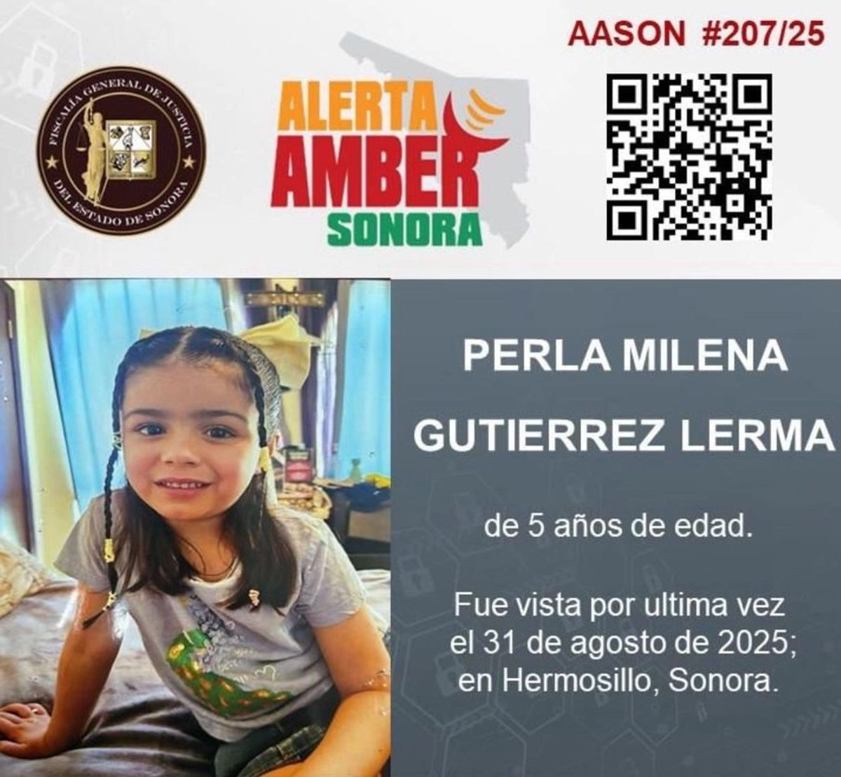 A través de la ficha de búsqueda, la Fiscalía de Sonora expuso que la menor fue sustraída de su propio hogar el pasado 31 de agosto, por lo que se mantiene un operativo de búsqueda en carreteras, aeropuertos y terminales de autobuses, coordinado por autoridades de seguridad y corporaciones de rescate.