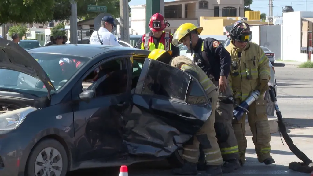 Tres personas resultaron lesionadas durante un choque registrado la mañana del miércoles en la colonia San Ángel, donde fue necesaria la intervención de Bomberos de Hermosillo para liberar a una mujer que quedó atrapada en la parte trasera del vehículo.