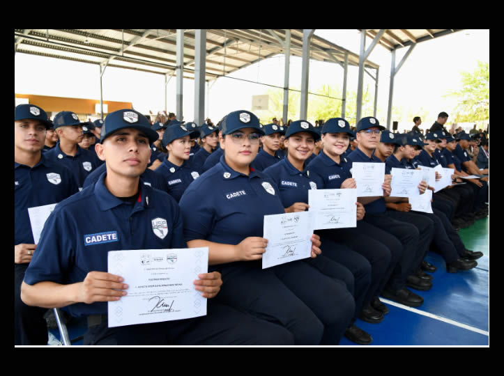 Frente a sus familias como testigos, al unísono resonó el exhorto de los cadetes: “Secretaría de Seguridad Pública, Gobierno del Estado de Sonora, Universidad de la Seguridad Pública… disciplina, honor y lealtad”.