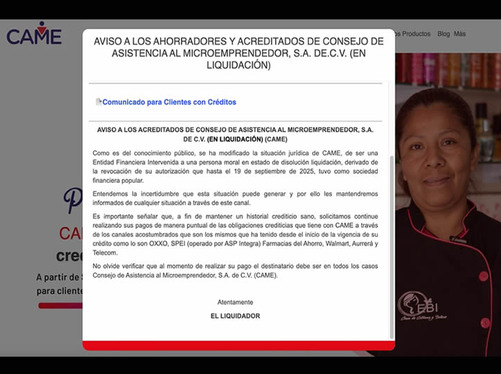 Ciudad de México. Came, la financiera que hoy fue puesta en liquidación, pidió a sus acreditados que no dejen de pagar sus créditos, con el propósito “de mantener un buen historial”.