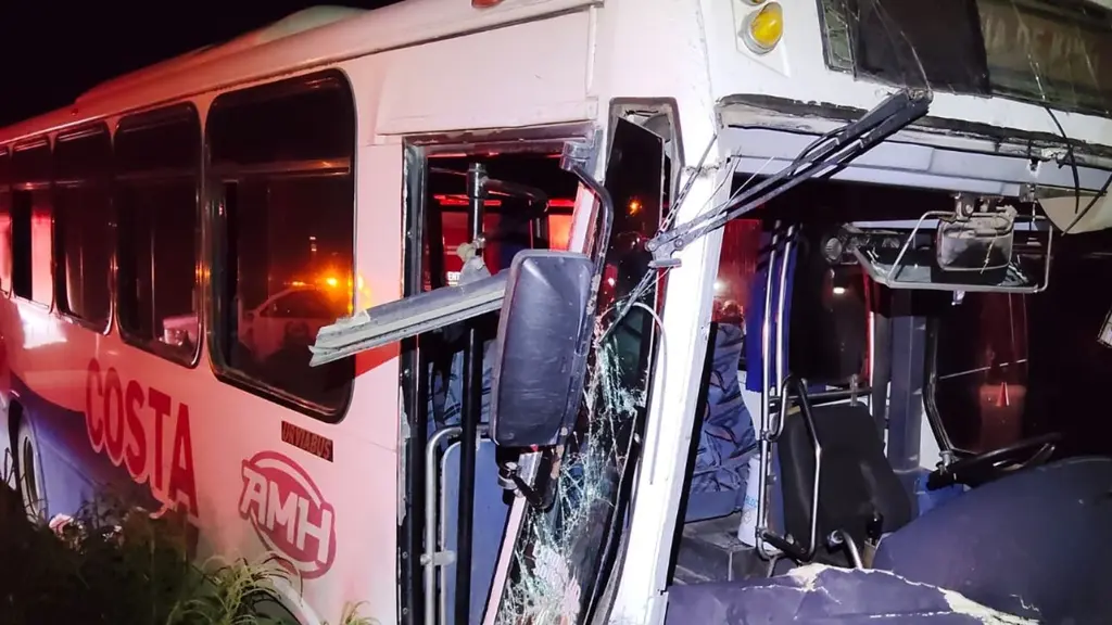 El siniestro ocurrió alrededor de las 19:20 horas en el kilómetro 56, cuando según el informe preliminar del Departamento de Tránsito Municipal, el conductor de la pickup, tipo Titán sin placas, invadió el carril contrario y colisionó de frente contra un autobús urbano de la línea Costa.