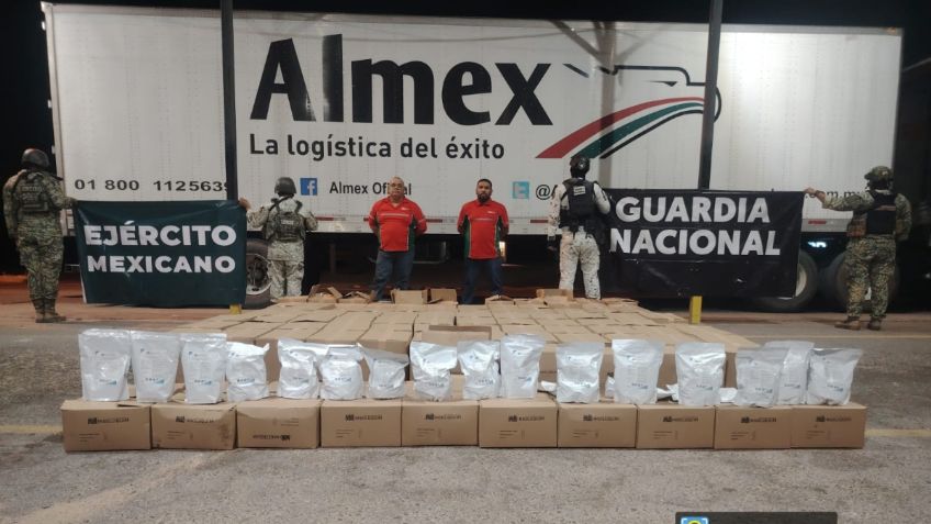 Como resultado de la aplicación de los procedimientos de revisión en coordinación con la Guardia Nacional, personal del Ejército Mexicano aseguró un cargamento de aproximadamente una tonelada de metanfetamina y poco más de 15 kilos de fentanilo en el Puesto Militar de Seguridad Regional “Estación Doctor”.