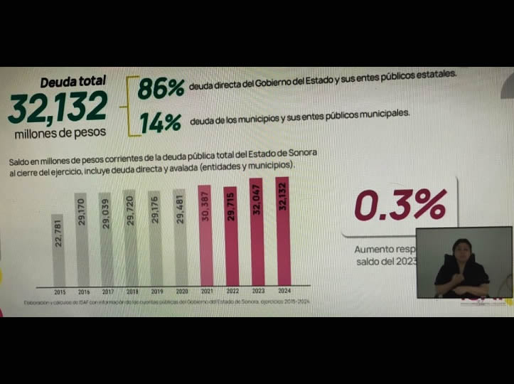 Cabe señalar que para diciembre de 2025, se actualizarán los números de la deuda pública de Sonora.