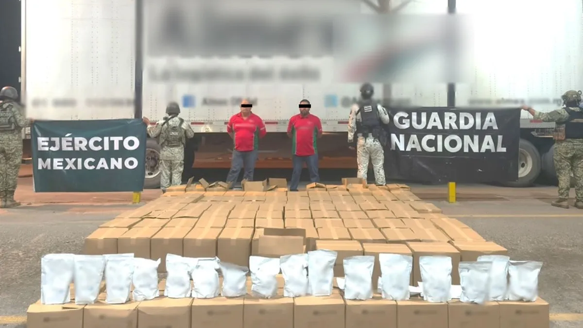 Además del decomiso de droga, la acción operativa en San Luis Río Colorado también permitió la detención de dos personas. Como parte de los bienes asegurados en el lugar, se logró la incautación de un vehículo tractocamión acoplado a una caja seca, sugiriendo que la unidad estaba siendo utilizada para el transporte de los narcóticos.