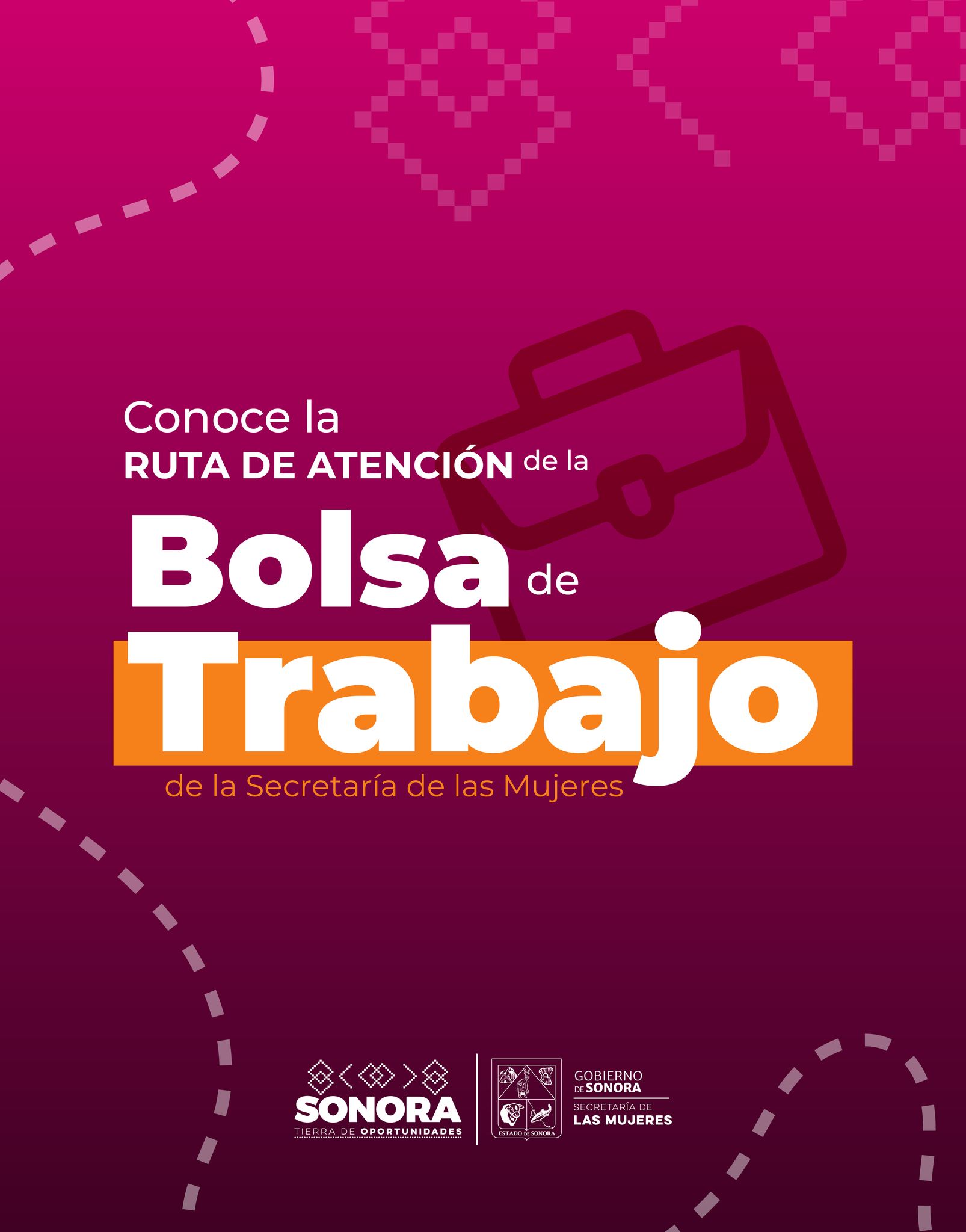 La Secretaría de las Mujeres de Sonora cuenta con una Bolsa de Trabajo para Mujeres, la cual tiene como objetivo de restituir el ejercicio pleno del derecho al acceso al trabajo digno de las mujeres que han vivido violencias, mediante la generación de oportunidades de vinculación laboral con perspectiva de género, fortaleciendo su autonomía económica y contribuyendo a una vida libre de violencia. Bolsa de Trabajo para Mujeres en Sonora. Fuente: Canva