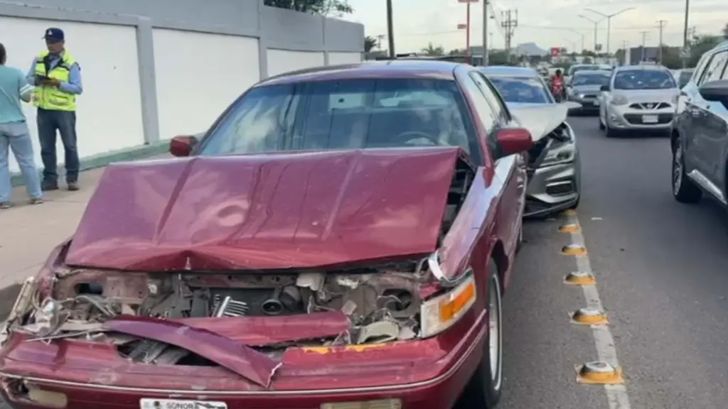 Un total de cinco vehículos se vieron involucrados en un choque múltiple en el bulevar Ignacio Soto frente al Residencial La Jolla en Hermosillo, Sonora.